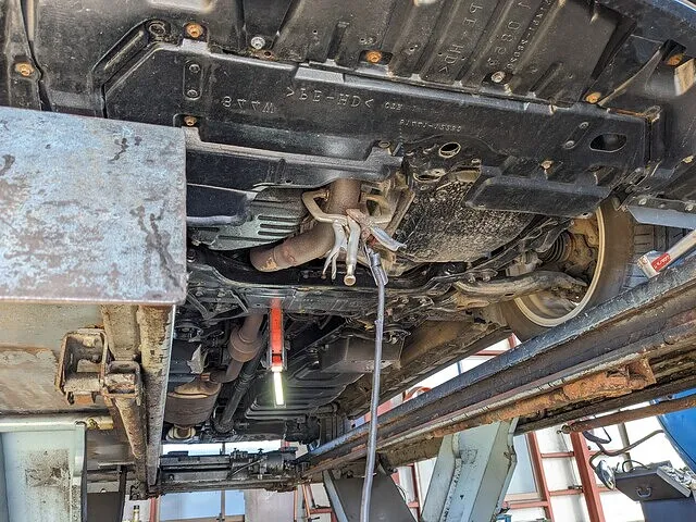 由利本庄市のお客様より、トヨタ エスティマのマフラー排気漏れ修理のご依頼をいただきました。