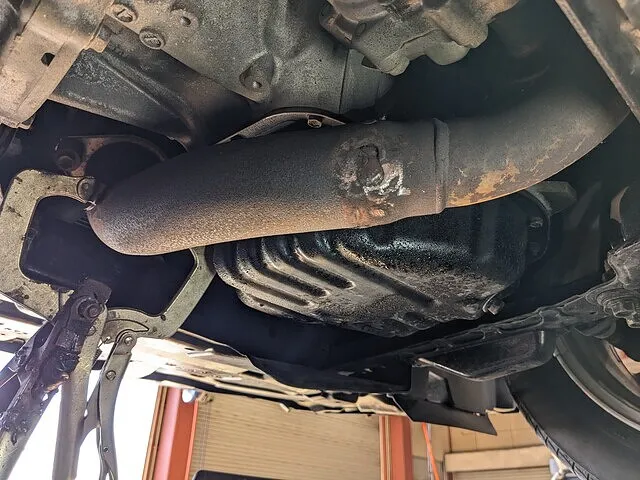 マフラーの排気漏れのは多くが「錆び」が原因です。車体の下についているマフラーは、雨などの水が付着したり、エンジンの排気ガスに含まれる微量の水分の蓄積によって内部から錆びが発生しやすい箇所。マフラーが錆びると、金属が腐食して穴が空いてしまい、そこから排気漏れが起こります。