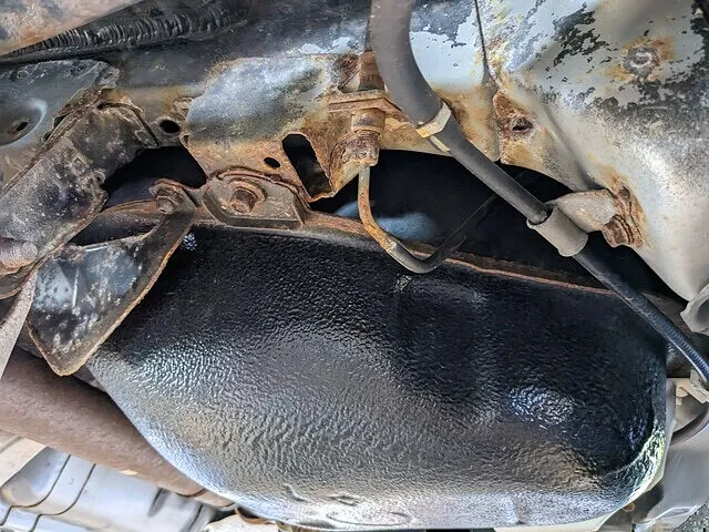 燃料タンクを下げてブレーキパイプを交換していきます。交換を終えたらエア抜きをして、オイル漏れがないか、締め付けに問題がないかを確認して作業完了。