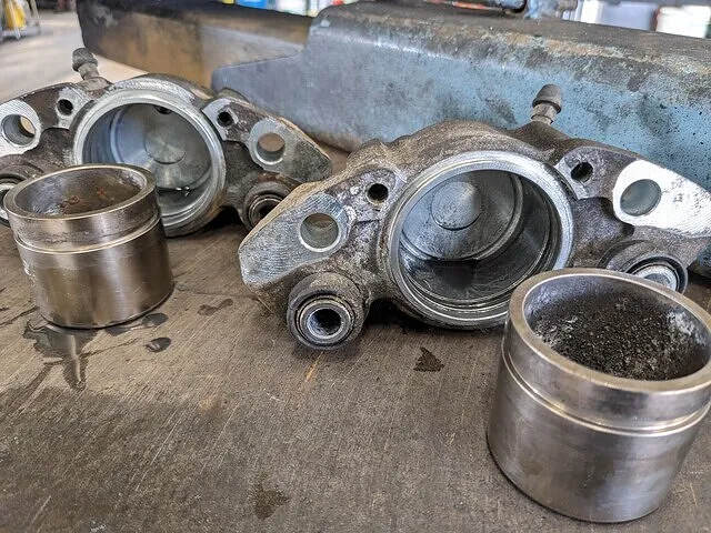 ブレーキキャリパーの固着が起こる原因としては、ピストンのサビや汚れ、パッキンの劣化などが挙げられます。