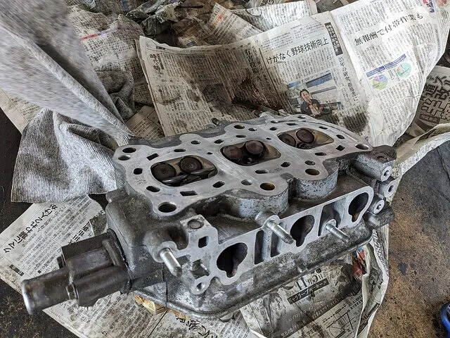 バモスのヘッドガスケット抜けは、メーカーでも延長保証していたほど頻発している定番の症状。タイミングベルトなど様々な部品を取り外して、シリンダーヘッドガスケットを交換していきます。